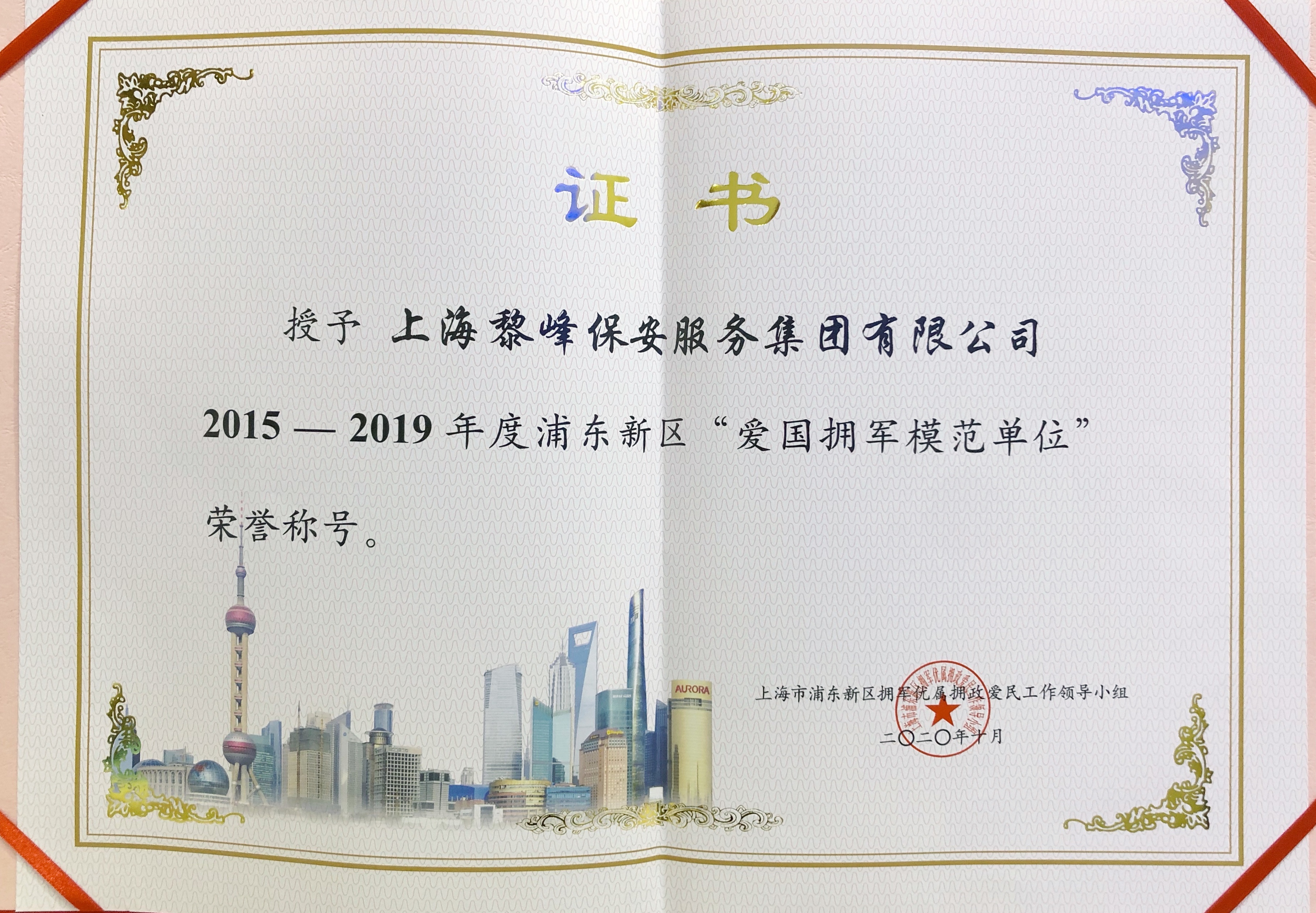 2015年 獲得上海市浦東新區“文明單位”稱號的首家保安服務公司